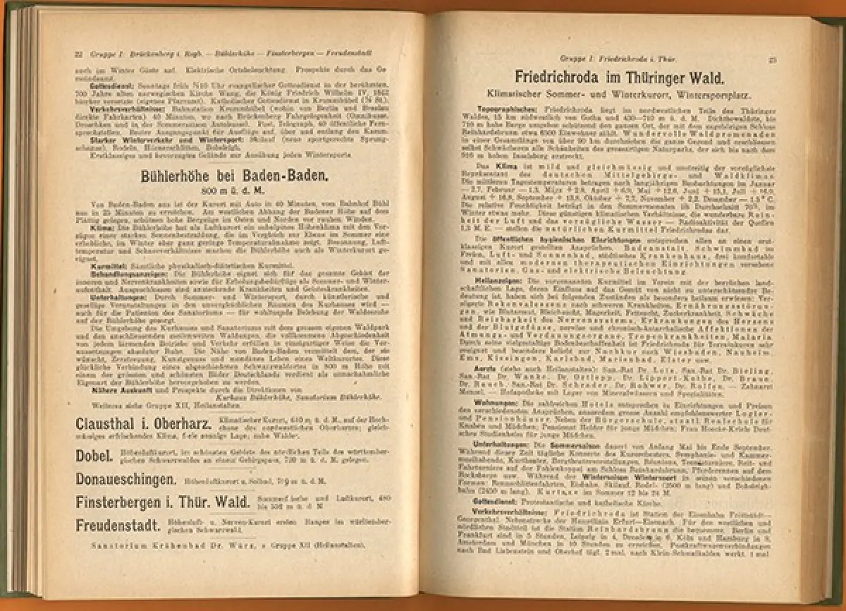 Gruppe I. Kurorte ausgewählt nach ihren klimatischen und natürlichen Verhältnissen die Besonderheit der Heilquellen alphabetisches Verzeichnis und Beschreibung der Kurorte in Deutschland und Nachbarländer nach Klima und Hochgebirge