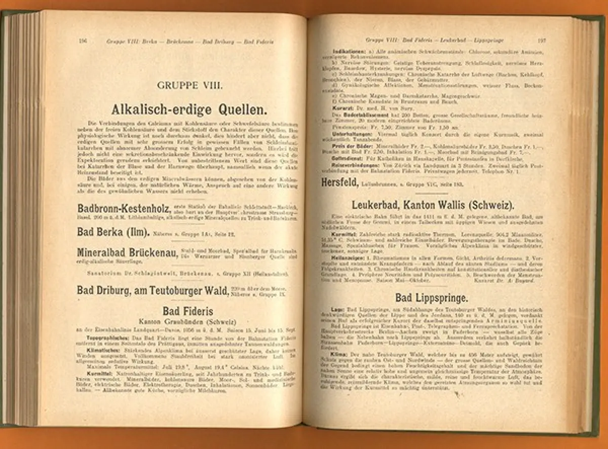 Gruppe IV. Kochsalz Quellen und Thermen Gruppe V. Seebäder und Badeorte Gruppe VI. Akalische Quellen und Heilbäder
