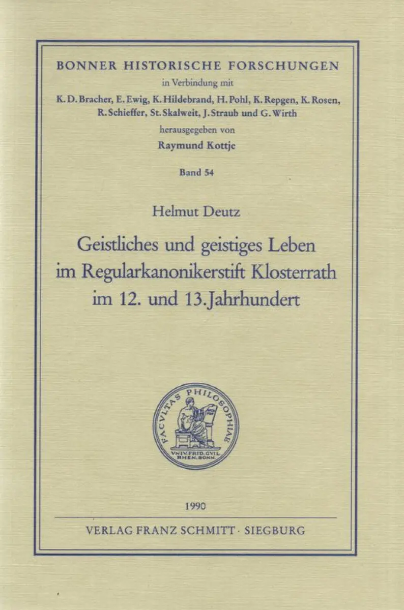 Deutz, Helmut: Geistliches und geistiges Leben im Regularkanonikerstift Klosterrath im 12. und 13. Jahrhundert. (Bonner historische Forschungen ; 54).