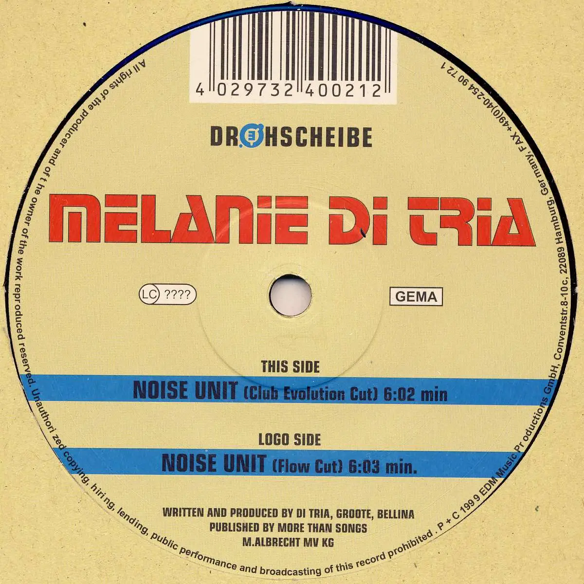 12" Maxi Melanie Di Tria - Noise Unit, Einheitscover der Plattenfirma, Zustand Platte M- Hülle M-; Made in Germany 1999 Drehscheibe 002, Tracks Flow Cut 6:03, Club Evolution Cut 6:02