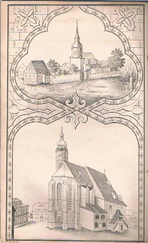 Die Diöcese Buttstädt in kirchlich-geschichtlicher und statistischer Hinsicht. Dem Archidiakonus und Großherzoglichen Oberkonsistorial-Rathe zu Weimar, Herren Johann Gottfried Zunkel, D. Theol. an Seinem funzigjährigen Amts-Jubelfeste am 6. Mai 1842 als Festgabe dargebracht von sämmtlichen Geistlichen der Diöcese Buttstädt. Mit der Ansicht der Kirchen zu Niederreissen und zu Buttstädt. [Handschriftl. Deckeltitel: Geschichte Buttstedts. Von M. Teuscher]