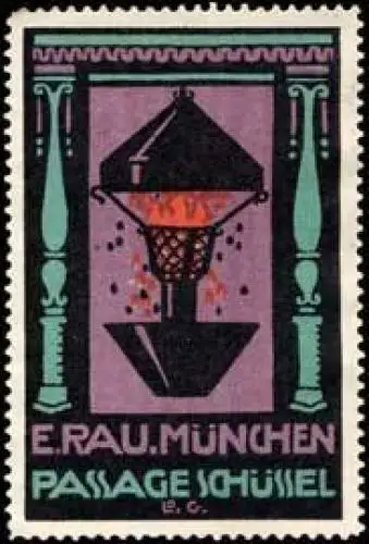 Kienspanlampe aus dem 17. Jahrhundert. Bild 7 (16). Rückseite mit Text. Eduard Rau, Lampen - Fabriks - Niederlage, Passage Schüssel, München, Größe/Zustand: 6x4 , guter Zustand, Original alte Reklamemarke die seinerzeit für die Werbung benutzt wurde