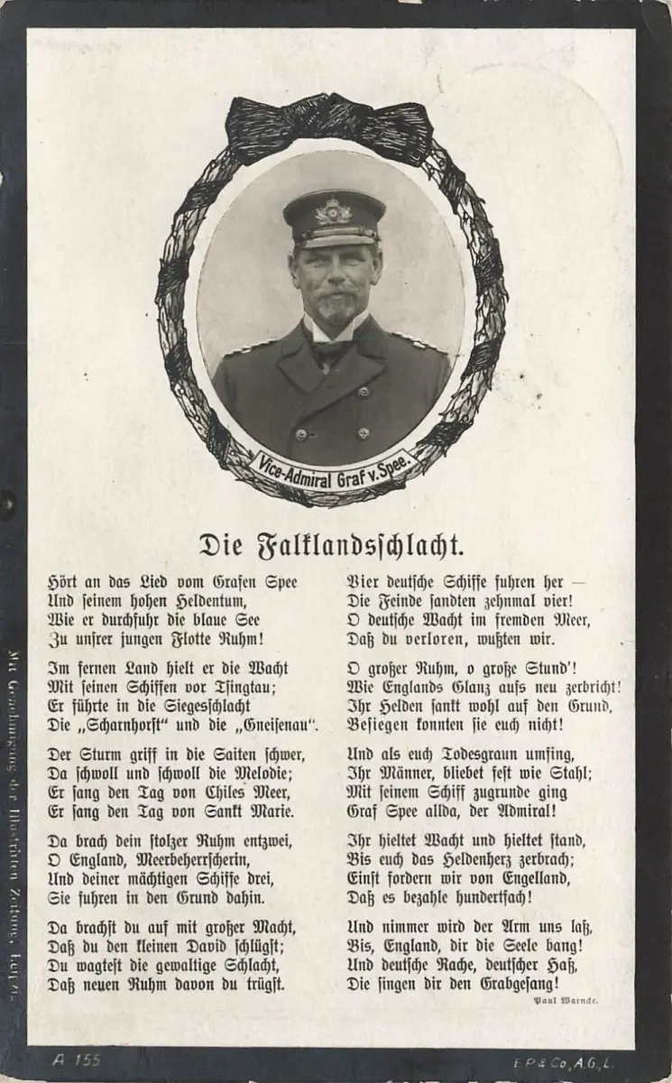 Die Falklandschlacht Vize Admiral Graf v. Spee Spruchkarte Postkarte AK 1915