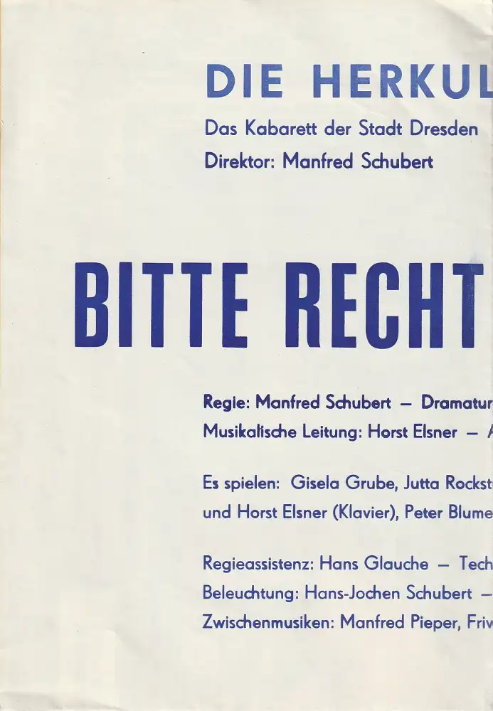 Die Herkuleskeule. Das Kabarett der Stadt Dresden DDR, Manfred Schubert, Wolfgang Schaller, Wolfgang Zobel, Herbert Löchner: Programmheft Die Herkuleskeule BITTE RECHT FREUNDLICH mit Plakat.