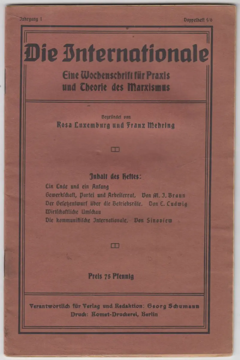 Die Internationale Doppelheft 5/6 / 1919, Schumann, Luxemburg, Mehring