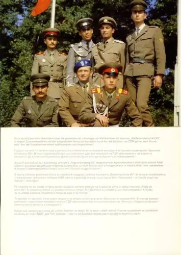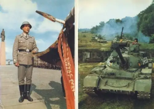 sehr guter Zustand, geringe Gebrauchs- und Alterungsspuren, Etui aus Pappe enthält 22 Hochglanzfotos in ca. doppelter Ansichtskartengröße vom Manöver Waffenbrüderschaft 1980 mehrsprachiger Text auf der Rückseite in Deutsch + Russisch + Ungarisch + Polnisch + Rumänisch + Bulgarisch + Tschechisch keine Überschneidung der Motive mit dem gleichzeitig angebotenen kleineren Foto-Set, kartoniert, ca. 15 x 21, Etui mit 22 Fotos