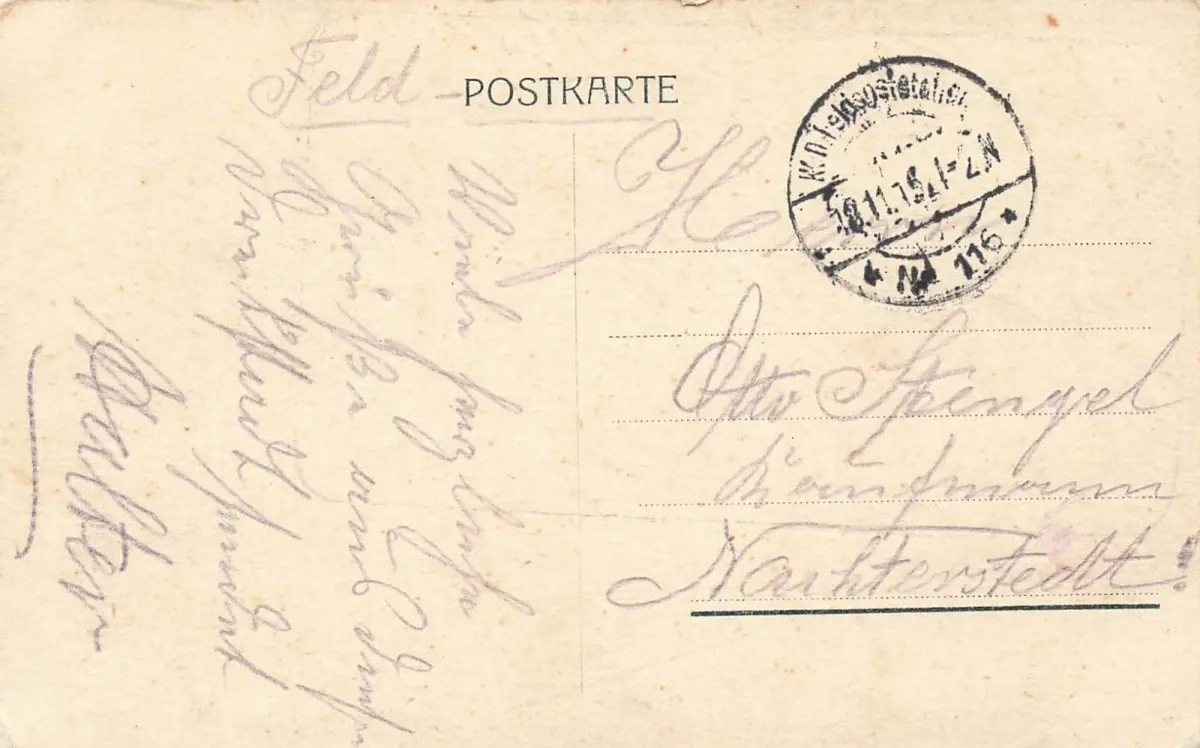 Original Postkarte Maße 9 x 14 cm Rückseite: gelaufen 1915 Zustand: leicht gebraucht