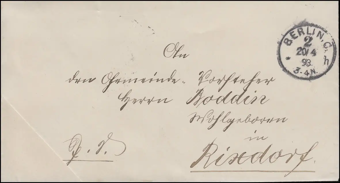 Dienstbrief der Oberpostdirektion BERLIN 2 - 20.4.92 nach RIXDORF 20.4.93