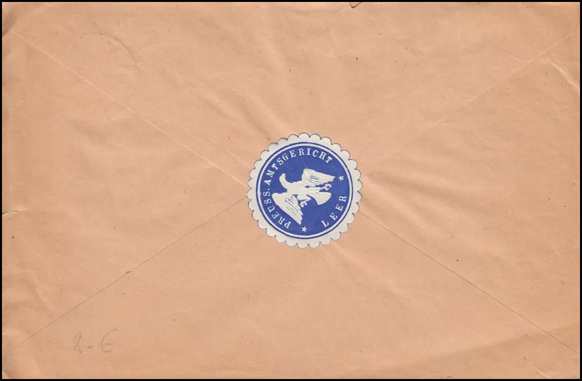 mit rückseitiger blauer Verschluss-Vignette "Preuss. Amtsgericht Leer", befördert nach Oldenburg