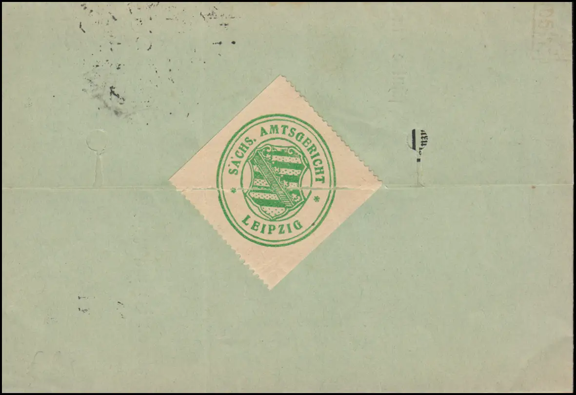 Briefstempel SÄCHS. AMTSGERICHT LEIPZIG und rückseitig entsprechendes Verschluss-Siegel, portogerechter Ortsbrief als Rechnung an den Verband reisender Kaufleute Deutschlands (V.r.K.D.) in Leipzig