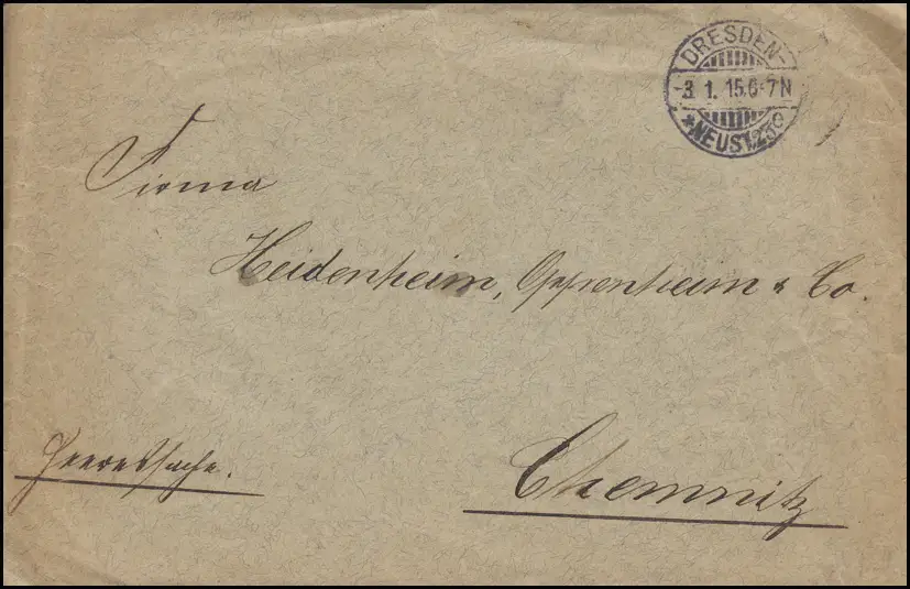 Dienstsache Briefstempel Bekleidungsamt XII. DRESDEN-NEUSTADT 23 e - 3.1.15