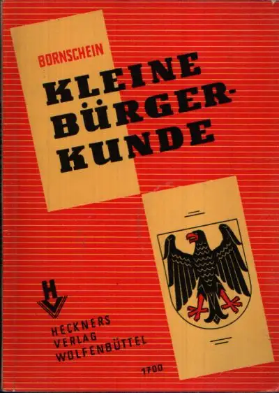 Kleine Bürgerkunde - Grundlagen des politischen und sozialen Lebens Deutschlands; Dipl.- Hdl. Bornschein, Wilhelm; Einzelpersönlichkeit - Gemeinschaft; Familie; Schule- Fortbildung; Bürger; Leben im Staat; Allgemeines über den Staat; Die Bundesrepublik Deutschland; Kirchliche Leben; Eintritt ins Berufsleben; Regelung des Arbeitslebens; Verschiedenen Arten zu wirtschaften; Notwendigkeit - Zweck der Zusammenarbeit der Völker; Zusammenarbeit im Einzelnen; politik; Gesellschaft