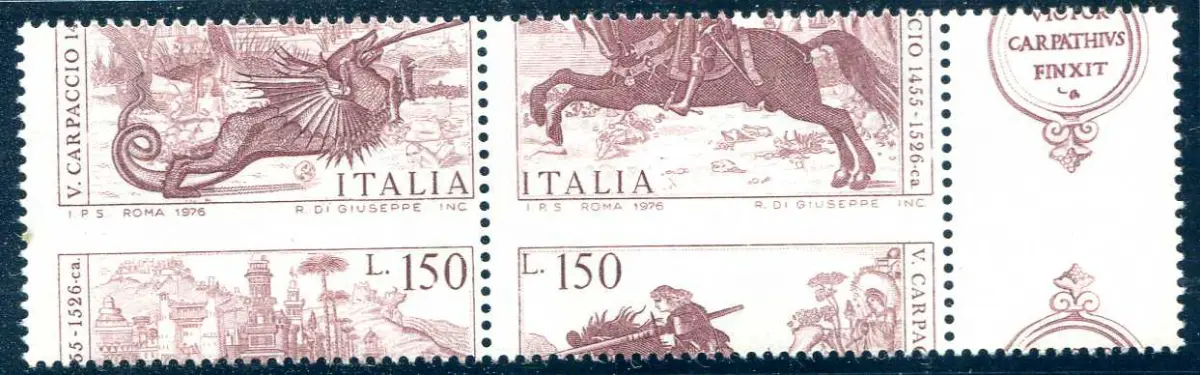 Diptychon Carpaccio Sorte L-Wert. 150 ist unten statt oben Vollgummi - Carpaccio Nr. 1340/1341 Triptychon mit stark vertikal verschobener Verzahnung bis zum L-Wert. 150 ist unten statt oben - Ungewöhnlich Code 775/3