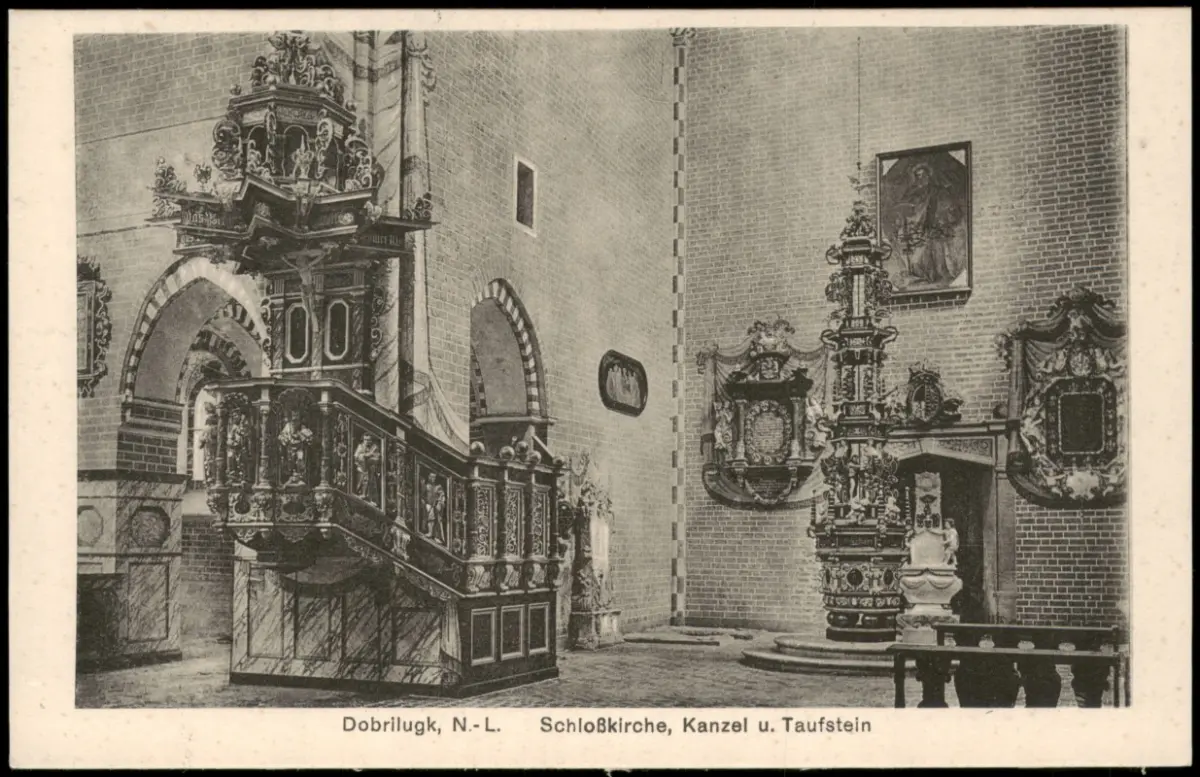 Doberlug-Kirchhain Dobrilugk Schloßkirche, Kanzel u. Taufstein 1910
