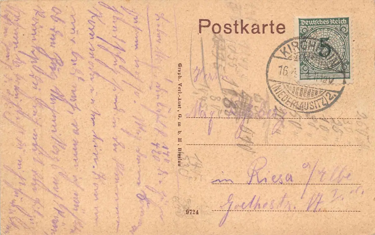 Rückseite: gelaufen 1924