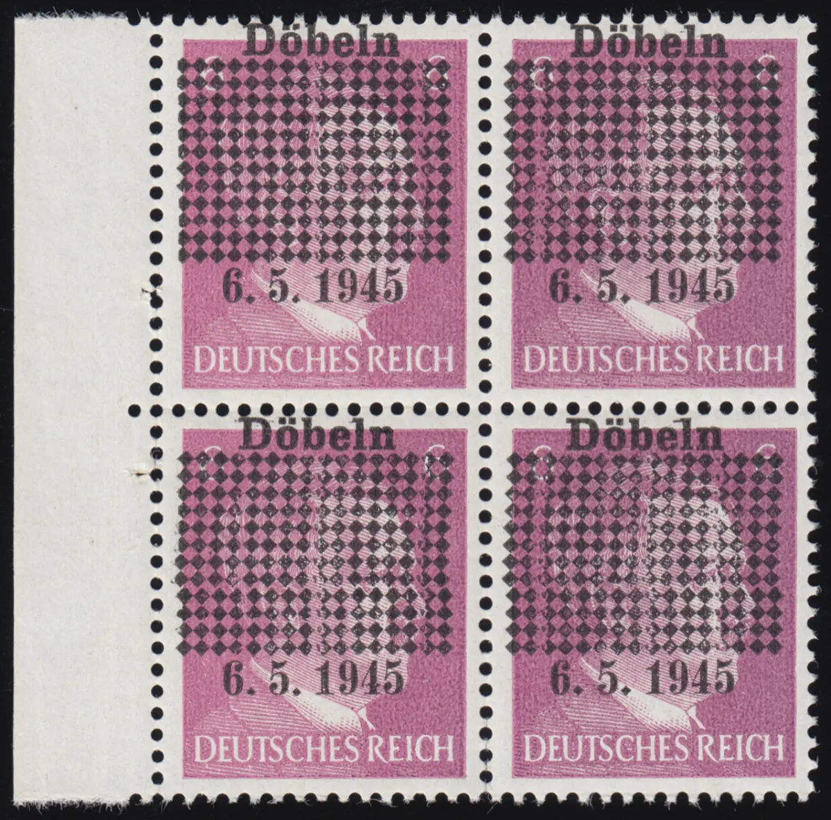 Döbeln 1b 6 Pf. Gitterüberdruck mit Datum 6.5.1945, Viererblock, postfrisch **