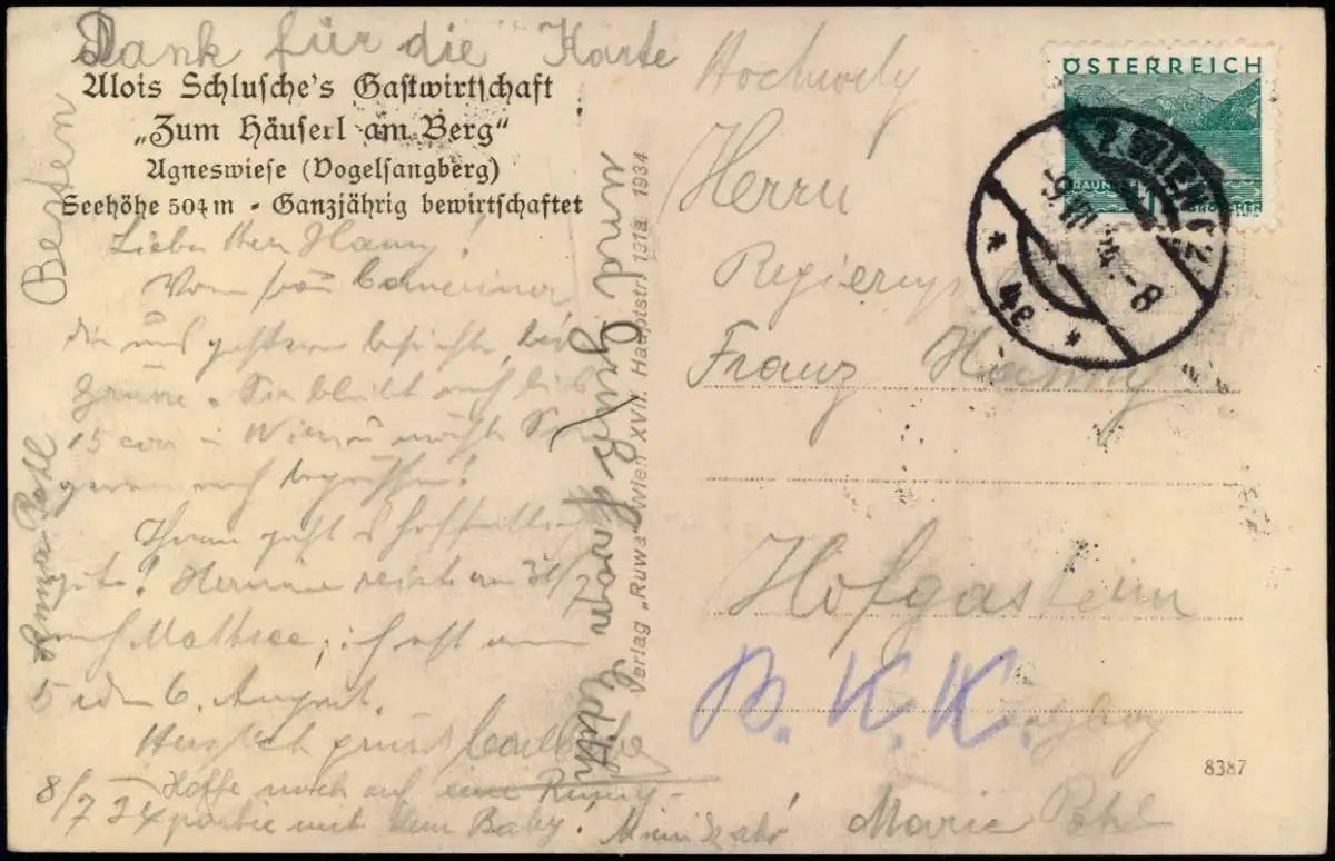 Döbling-Wien Kaffe Restaurant Häuserl am Berg Agneswiese Vogelsangberg 1934
