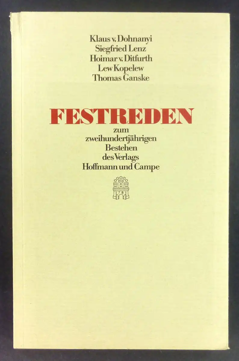 Titel: Festreden zum zweihundertjährigen Bestehen des Verlags Hoffmann und Campe. Klaus von Dohnany, Siegfried Lenz, Hoimar von Ditfurth, Lew Kopelew und Thomas Ganske