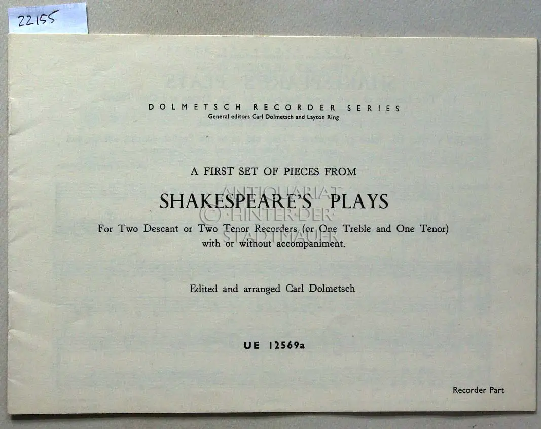 Titel: A First Set of Pieces From Shakespeare`s Plays, For Two Descant or Two Tenor Recorders (or One Treble and One Tenor) with or without accompaniment. Recorder Part. [= UE 12569a]