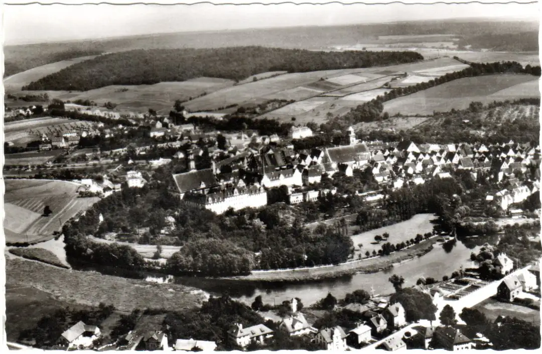 Donauwörth m. Bahnhofstrasse u. unbebautem Schellenberg, ungebr. Luftbild-AK