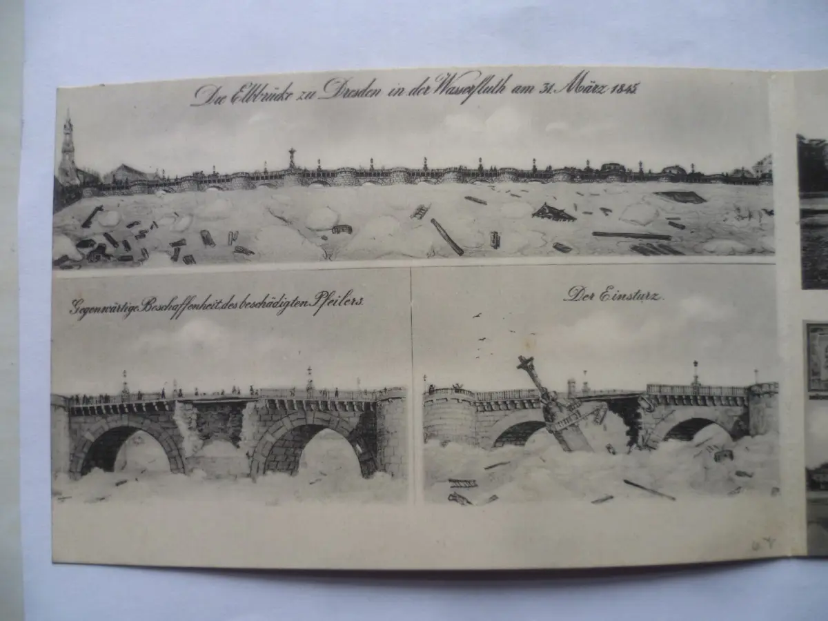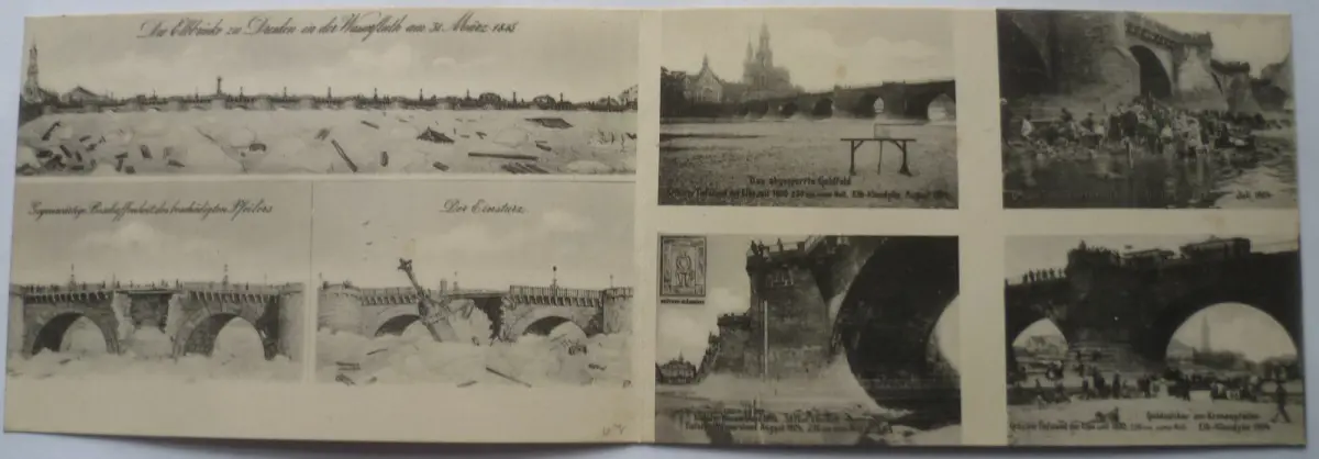 Doppel-AK Dresden Augustusbrücke Hochwasser 1845 u. Niedrigwasser 1904