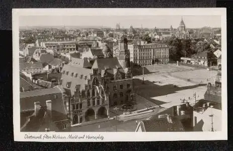 Dortmund. Altes Rathaus. Markt und Hansaplatz - Gelaufen 1942. (NPLZ 46000)