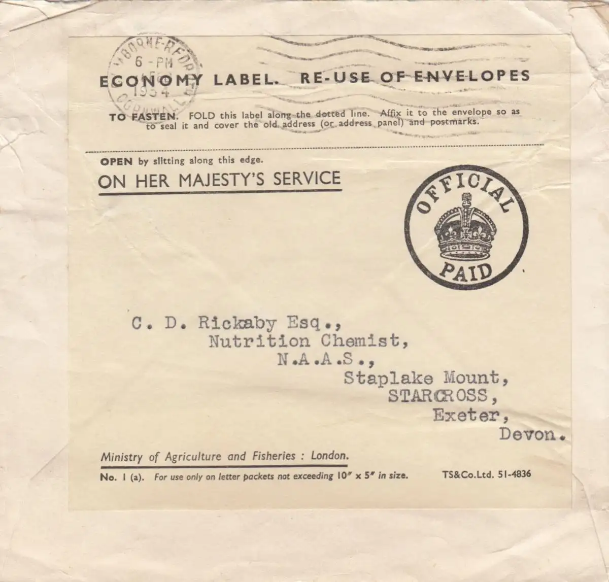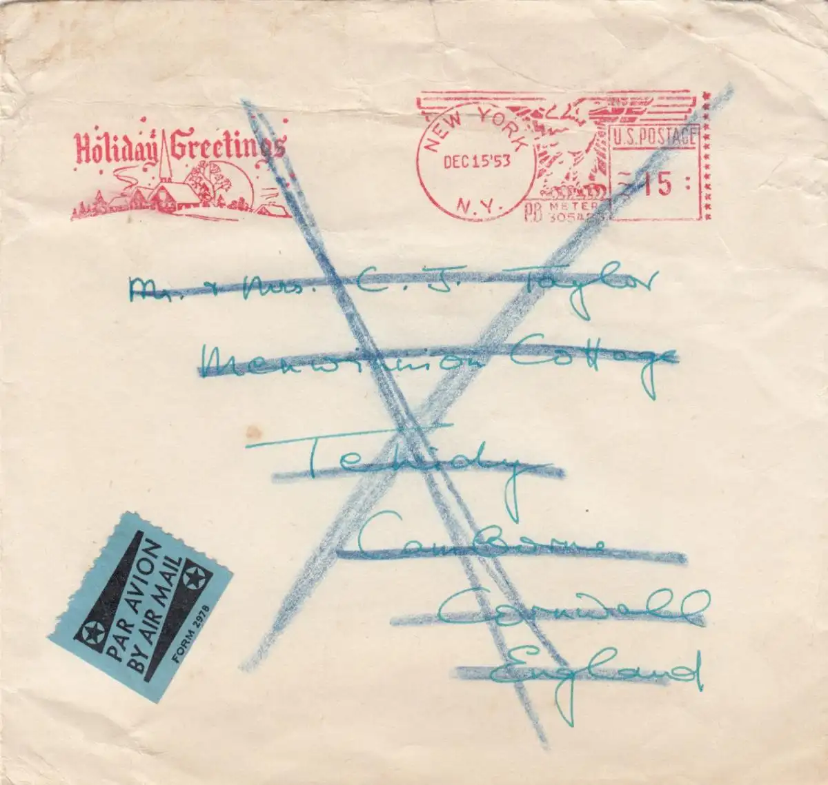 Double used cover: 1953 New York, 1954 Cornwall to Starcross, Exeter, Devon