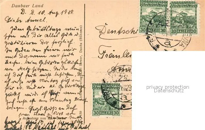 Draschen_Drazejov Landschaftspanorama Felsendorf postalisch gelaufen 1929 Erhaltung siehe scans [FriedD77] Frierer