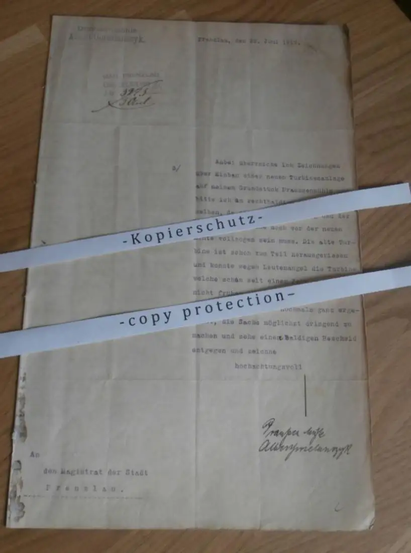Draussen - Mühle Gorselanszyk Prenzlau , 1917 , Wassermühle , Turbinen , Stempel , Polizei , Regierung , Uckermark !!!
