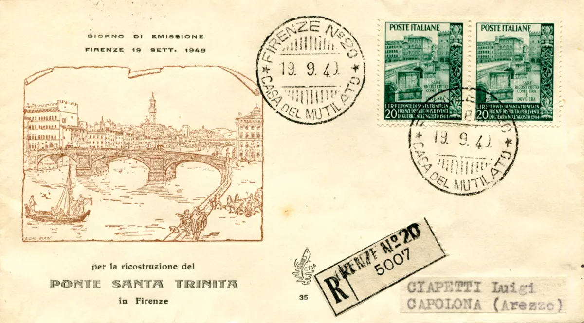 Brücke von S.Trinita Nr. 613 Paar auf Einschreiben für Arezzo mit Annullierung der Ankunft - Kleiner Vergilbungspunkt auf dem Umschlag - Ungewöhnlich Cod. 341/16