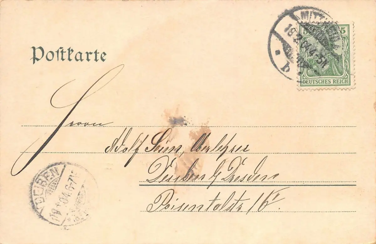 Rückseite: gelaufen 1904