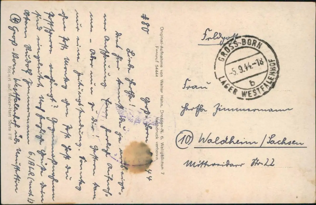 Dresden Luftbild ALBRECHT SCHLÖSSER 1944 Walter Hahn: 4919 2. WK Feldpost