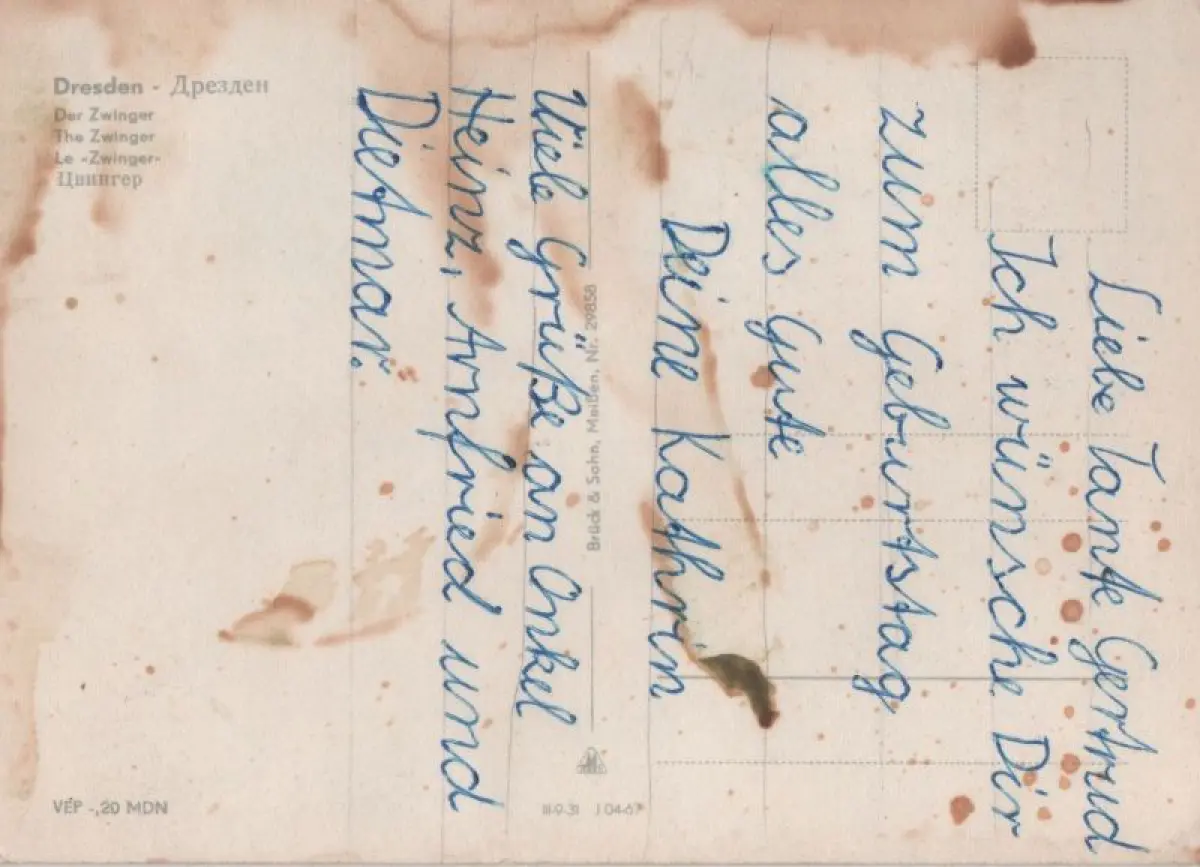 sehr fleckigPostleitzahl:01219 (neu) / O 8000 (alt)