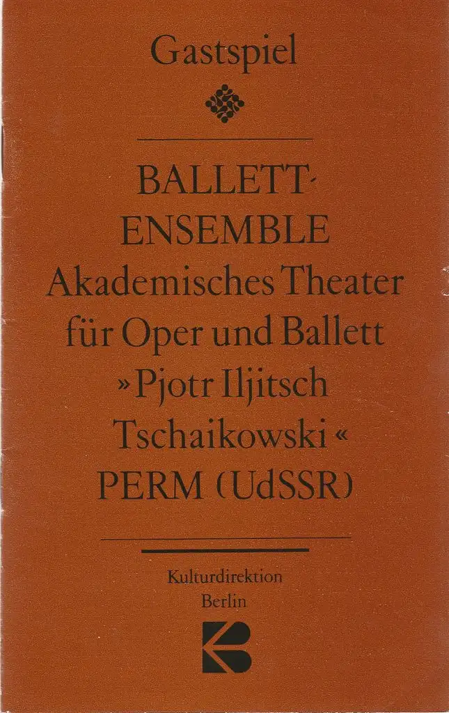 Titel: Programmheft BALLETT ENSEMBLE AKADEMISCHES THEATER FÜR OPER UND BALLETT PJOTR ILJITSCH TSCHAIKOWSKI PERM (UDSSR) 6. + 7. Juni 1984 Metropol-Theater Berlin