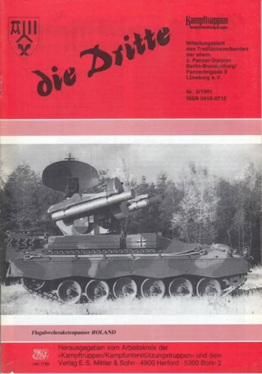 Dritte, die. - Traditionsverband der ehemaligen 3. Panzer-Division Berlin-Brandenburg / Arbeitskreis "Kampftruppen/Kampfunterstützungstruppen" (Hrsg.). - Thomer, Edbert (Red.). - Lander, Udo u.a. (Autoren): die Dritte. Jahrgang 40, 1991, Nr. 3. Mitteilung