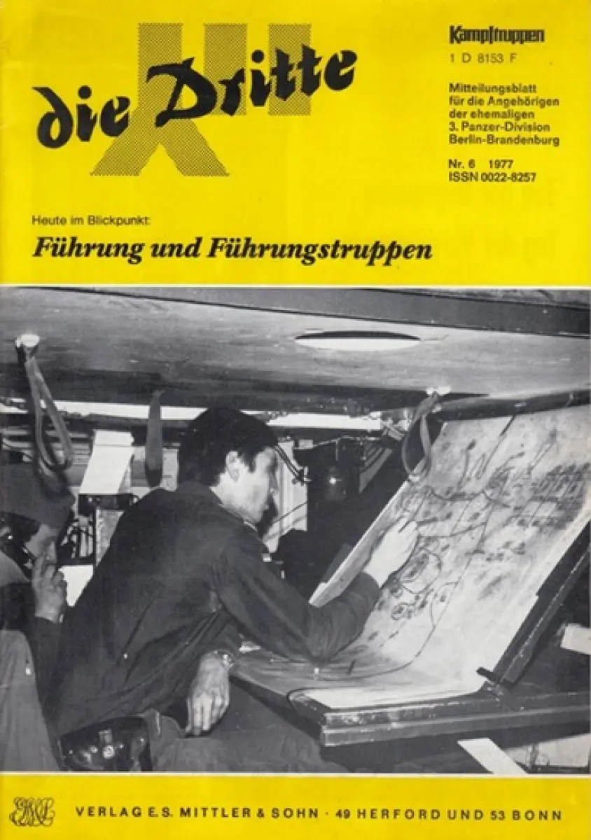 Titel: die Dritte. Jahrgang 26, 1977, Nr. 6. Mitteilungsblatt für die Angehörigen der ehemaligen 3. Panzer-Division Berlin-Brandenburg. Führung und Führungstruppen