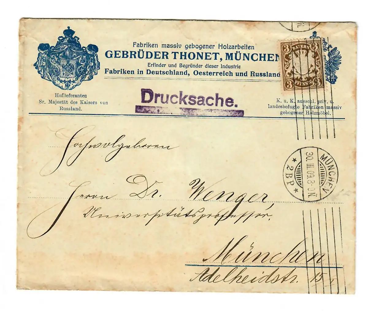 Drucksache Holzarbeiten 1909 von München, Ortsbrief