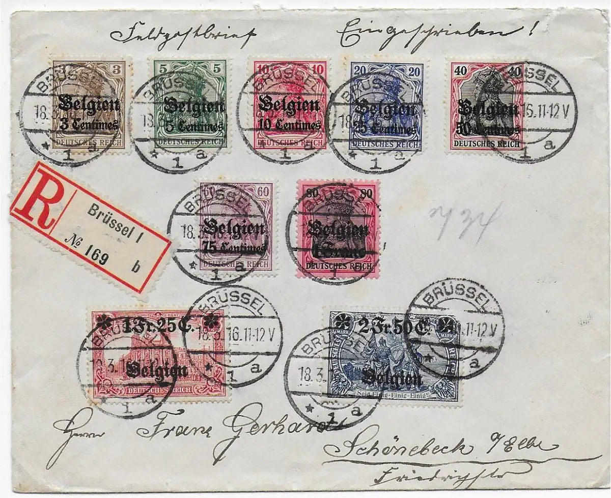 Dt. Besetzung Belgien: Einschreiben Brüssel 1916 nach Schönebeck