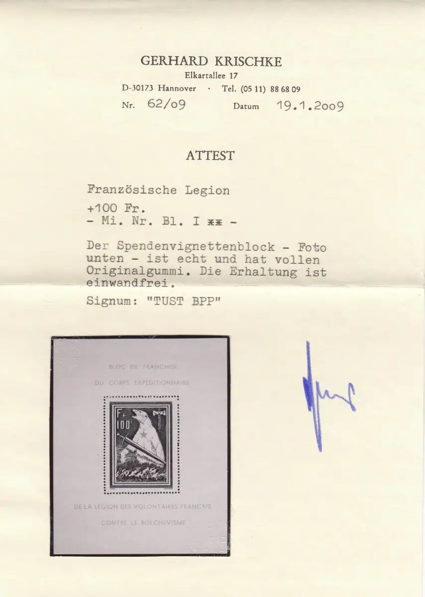 Dt. Besetzung Frankreich: Block I, postfrisch, **, Krischke, BPP Signatur