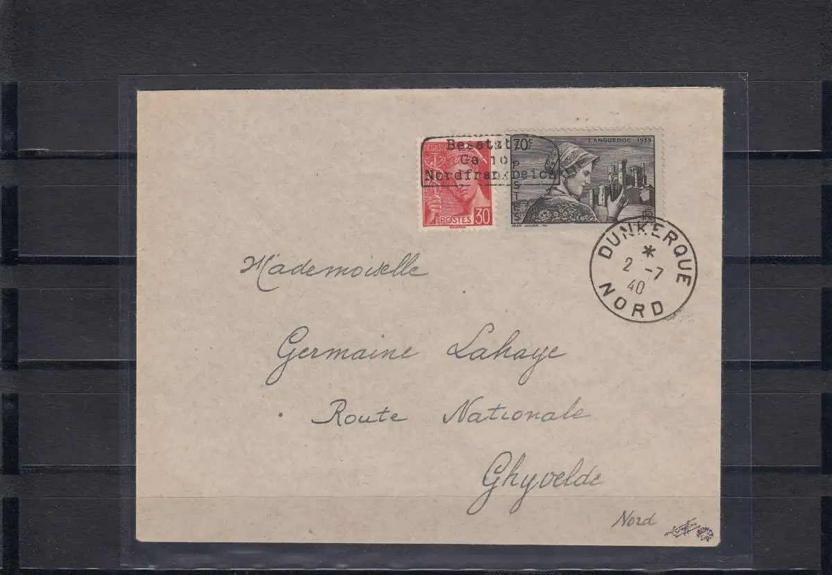 Dt. Besetzung Frankreich: MiNr. 381, 408, auf Brief 1940 Dunkerque, Krischke