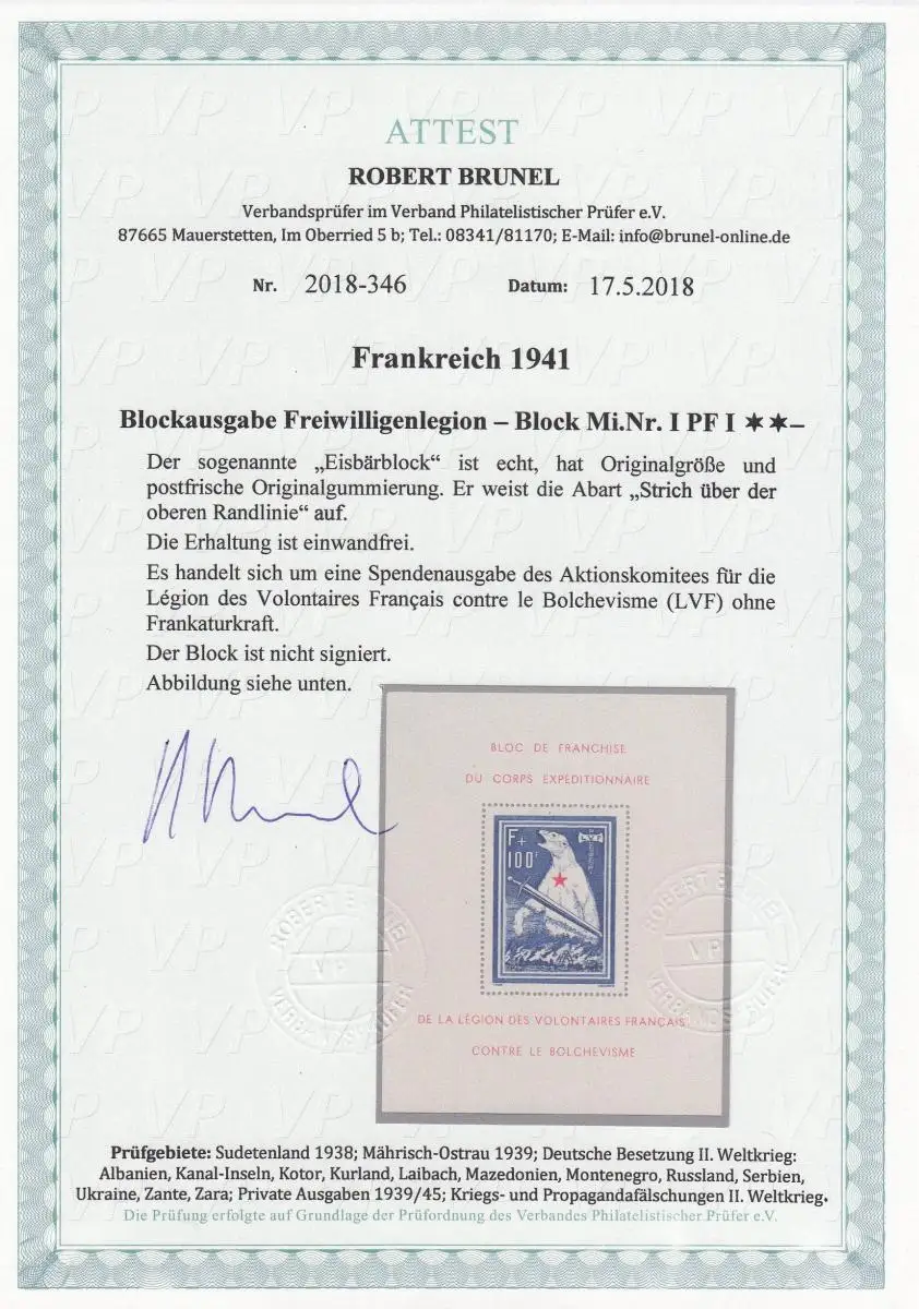 Dt. Besetzung II. WK: Frankreich: MiNr. Block I PF I, **, postfrisch