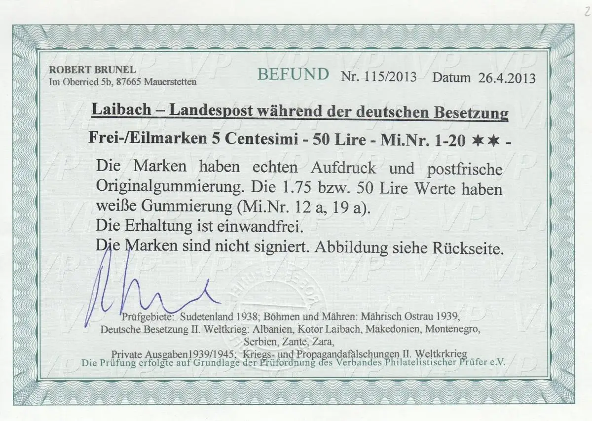 Dt. Besetzung Laibach: Michel Nummer 1-20, postfrisch