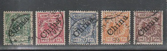 Dt. Post China, Nr. 2 - 6 in Typ I, gestempelt, geprüft Steuer BPP