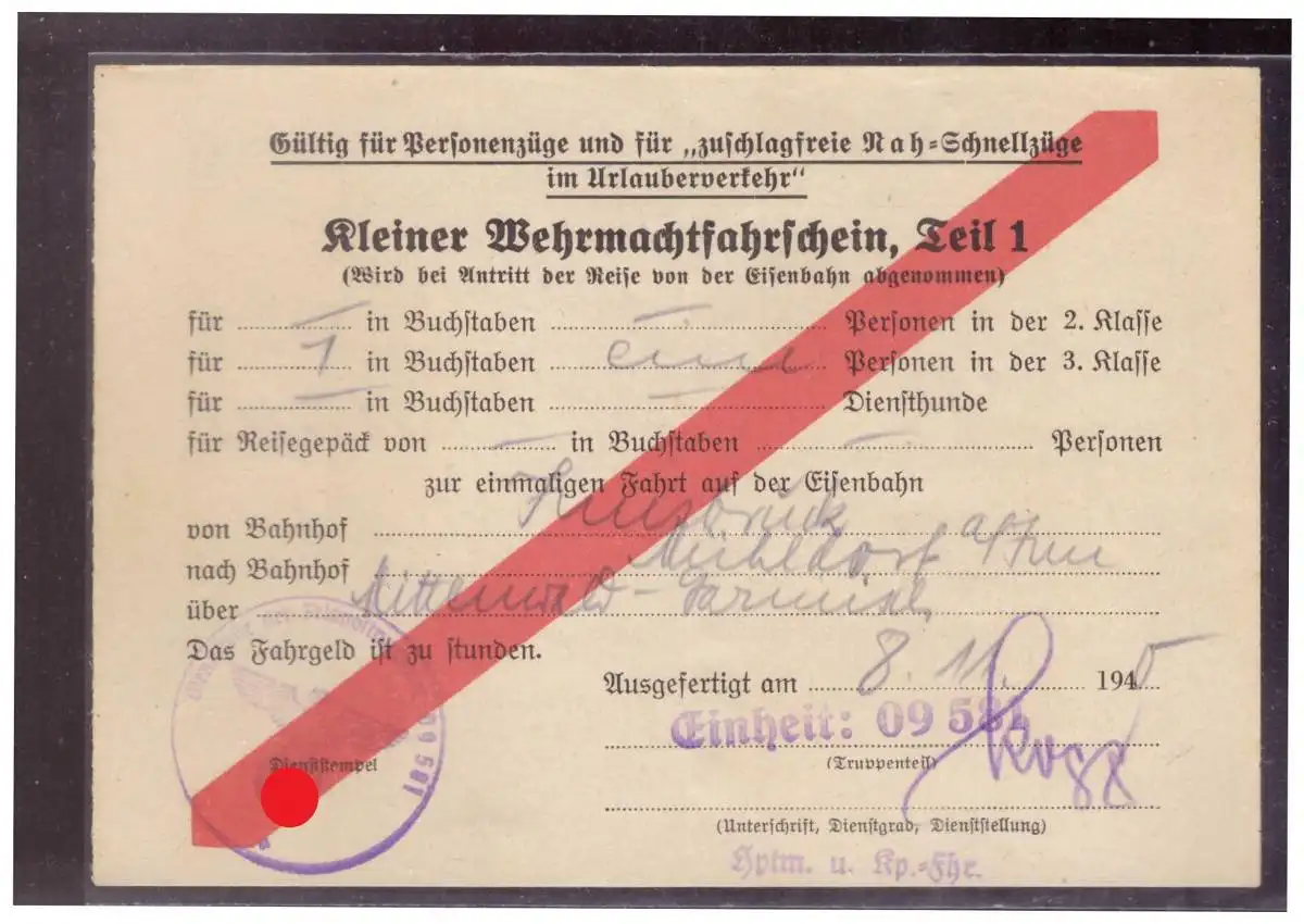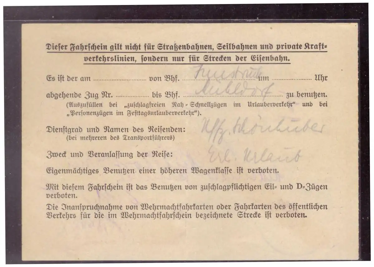 Dt- Reich (020269) Kleiner Wehrmachtsfahrschein Teil 1 nach Mühldorf am 8.11.1940
