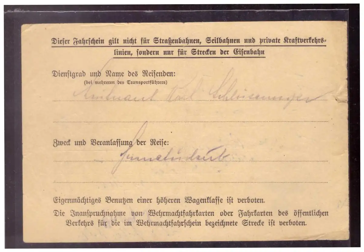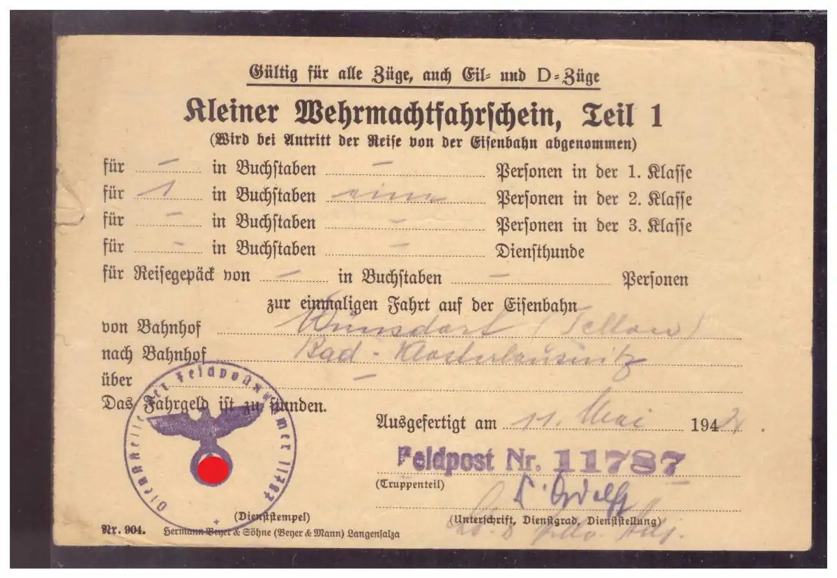 Dt- Reich (020275) Kleiner Wehrmachtsfahrschein Teil 1 vvom 11.5.1942