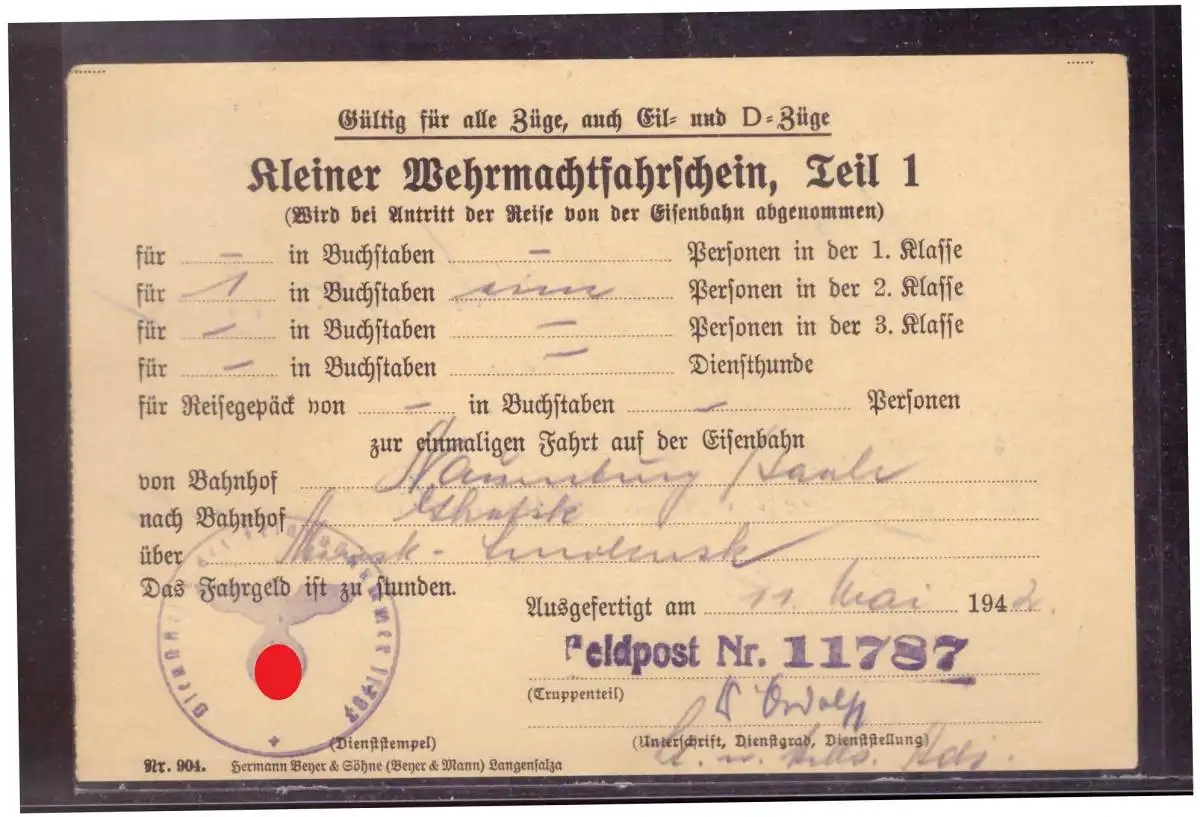 Dt- Reich (020277) Kleiner Wehrmachtsfahrschein Teil 1 vom 11.5.1942