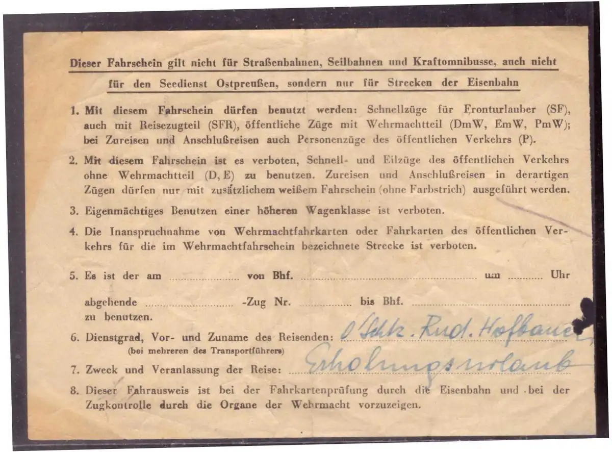 Dt- Reich (020279) Kleiner Wehrmachtsfahrschein Teil 1 vom 3.6.1942