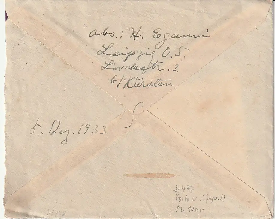 Gute Bedarfserhaltung. Dezember 1933. Mit Inhalt (japanische Schrift). Michelwert 100,00 €