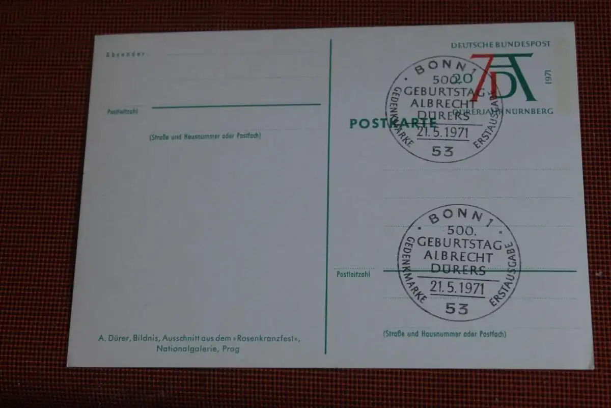 Dürer Sonderpostkarte 1971; PSo3/05; Rosenkranzfest, ESST Bonn