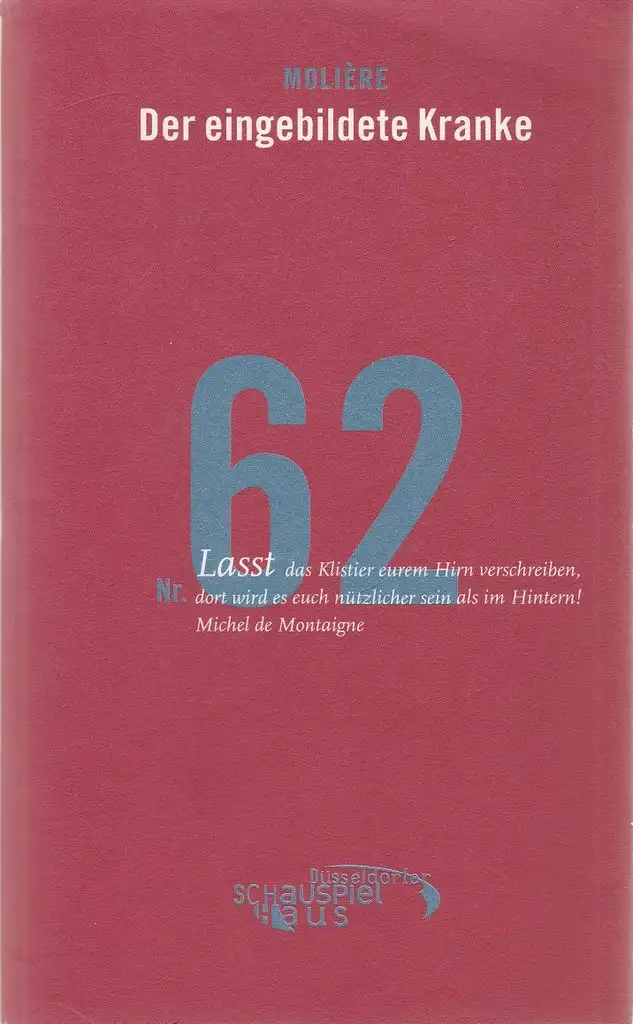 Düsseldorfer Schauspielhaus, Neue Schauspiel GmbH, Anna Badora, Sybille Meier, Stephanie Winter: Programmheft DER EINGEBILDETE KRANKE Komödie von Moliere Premiere 14. Oktober 2005 Spielzeit 2005 / 2006 Nr. 62.